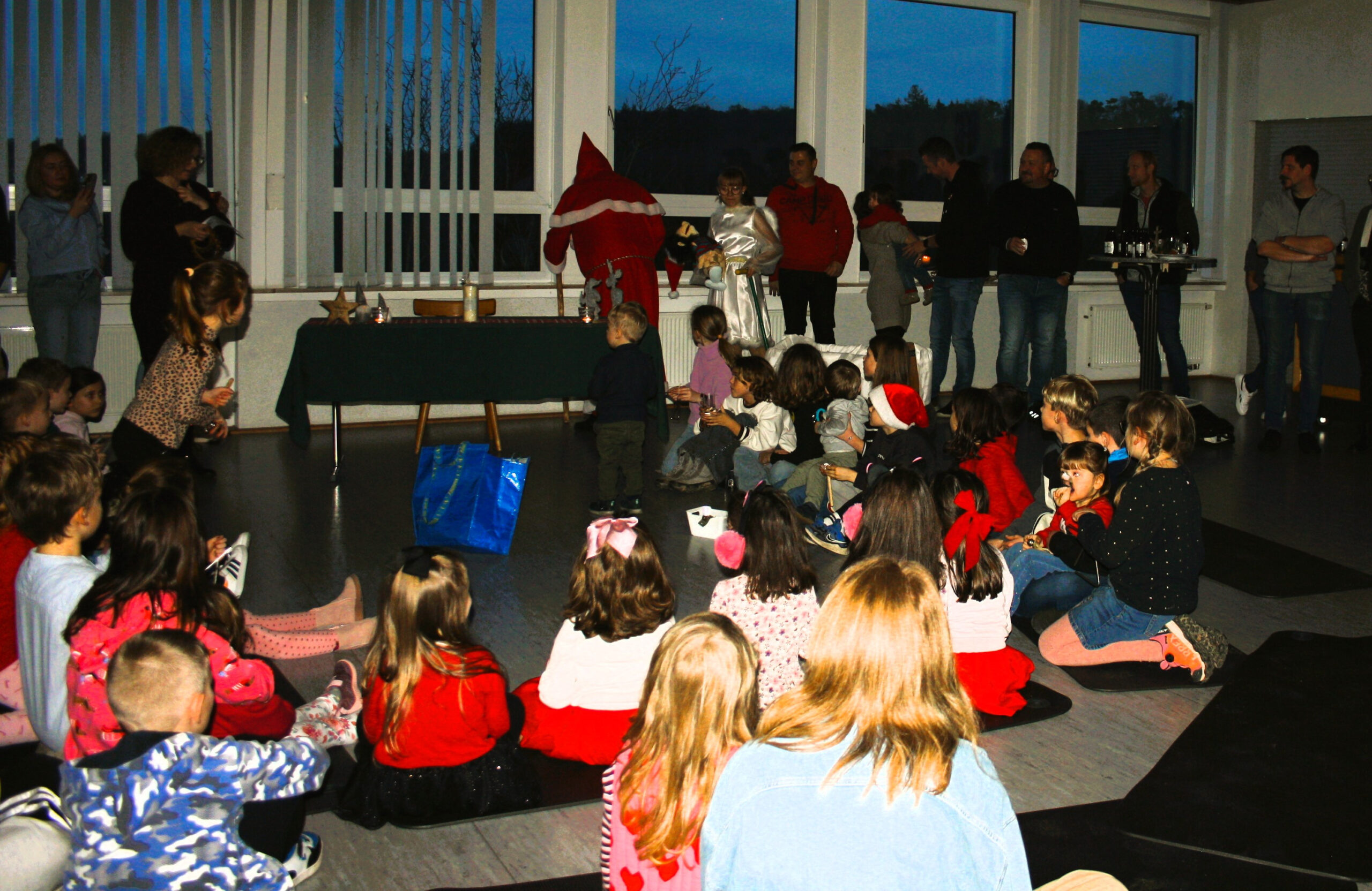 Um 16.30 Uhr kam schließlich der Nikolaus mit seinem ihm helfenden Engel, unterhielt sich mit den Kindern und hatte für jedes von ihnen ein kleines Päckchen.