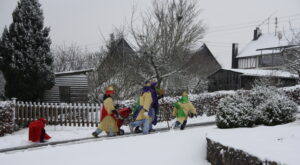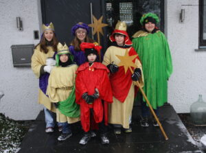 In ihren prächtigen Gewändern gingen Kaspar, Melchior und Balthasar mit ihrem Gefolge in Grenderich durch den Schnee, um den Einwohnern und Besuchern der Häuser den Segem zu bringen und für „Kinder in Not weltweit“ zu sammeln.